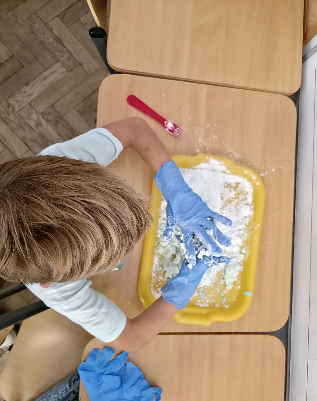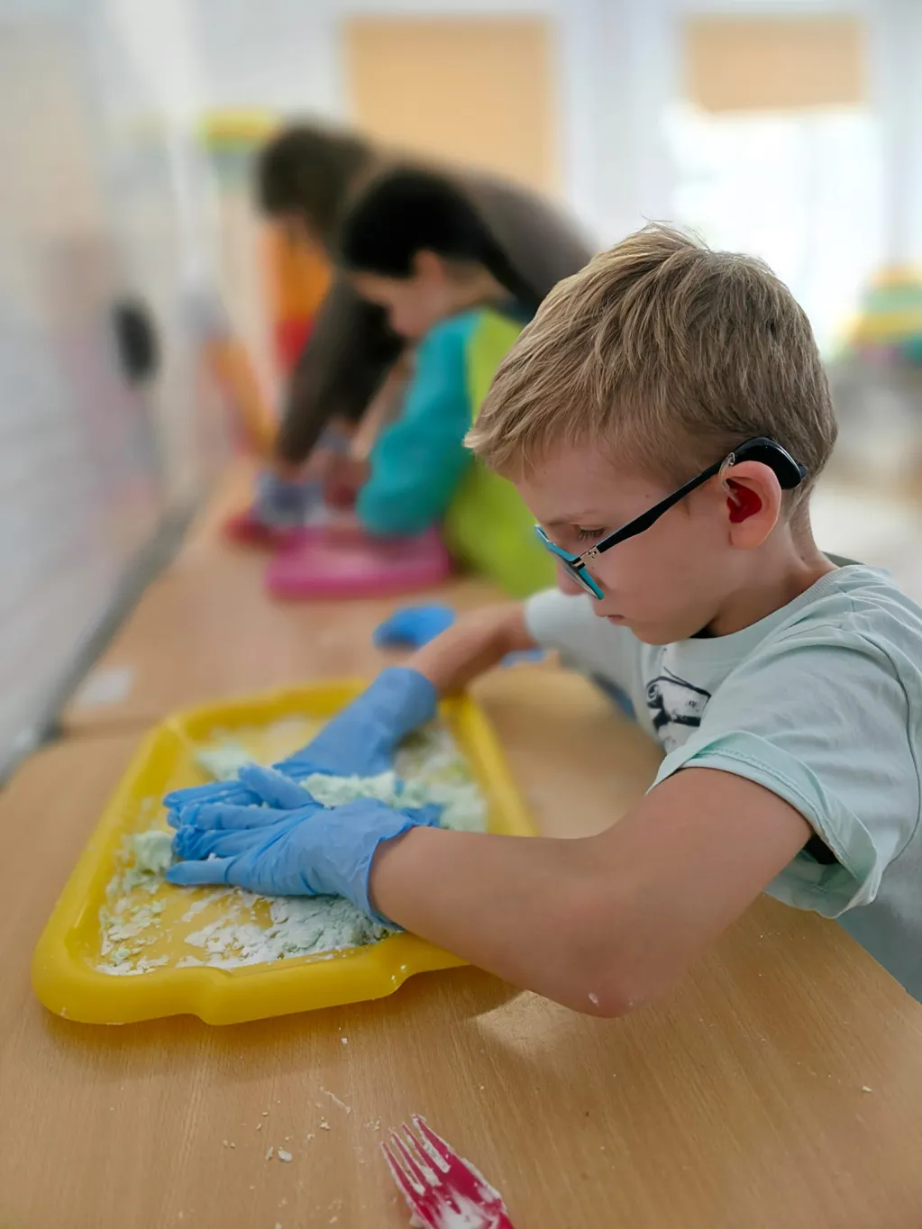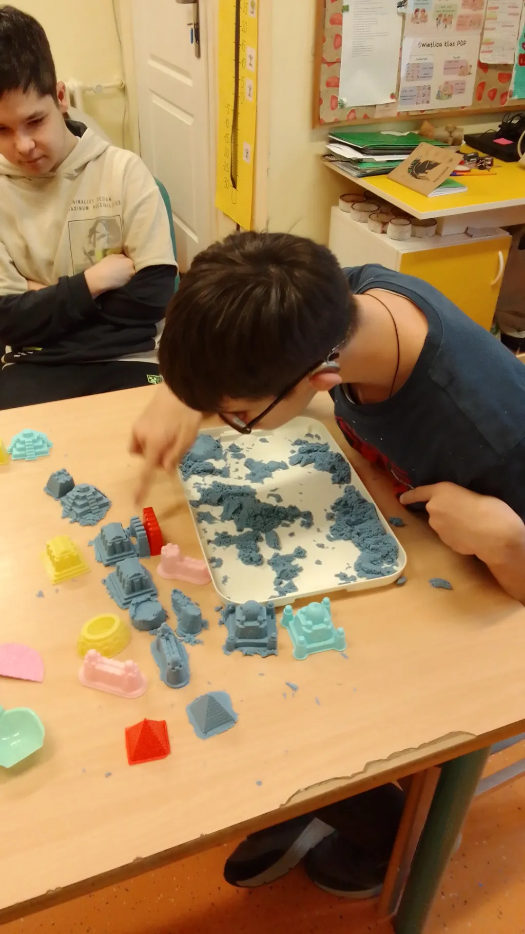 Na dzisiejszych zajęciach z masami sensorycznymi w świetlicy było kreatywnie, sensorycznie i bardzo wesoło Z okazji Dnia Kochania Siebie i zbliżających się walentynek uczniowie tworzyli prace plastyczne z soli – niektórzy przy okazji sprawdzili też, jak smakuje Na koniec, stęsknieni za ładną pogodą, zbudowaliśmy zjeżdżalnie i daliśmy się ponieść zabawie. Było dużo śmiechu i jeszcze więcej dobrej energii!