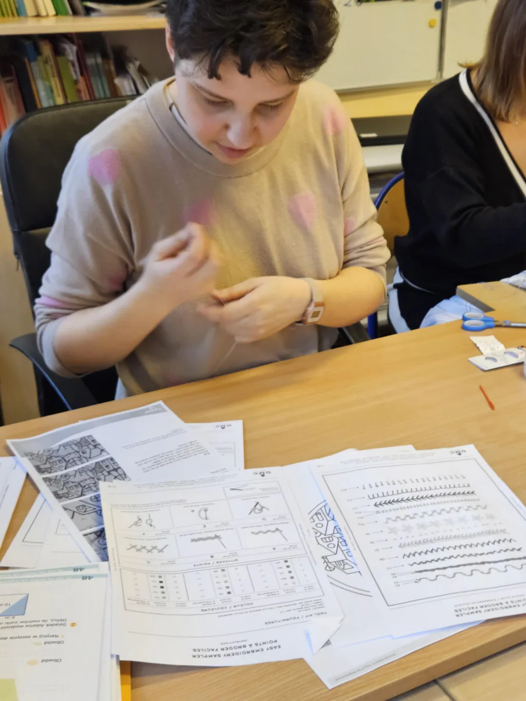 Świetlicowe zajęcia z wyszywania i pisania igłą oraz nitką pokazują nam jak wiele cierpliwości oraz zdolności manualnych mają nasi podopieczni... oraz my :) Efekty już niebawem!!