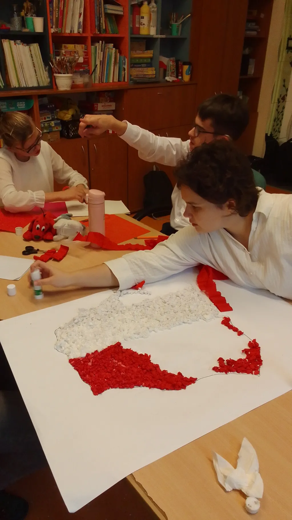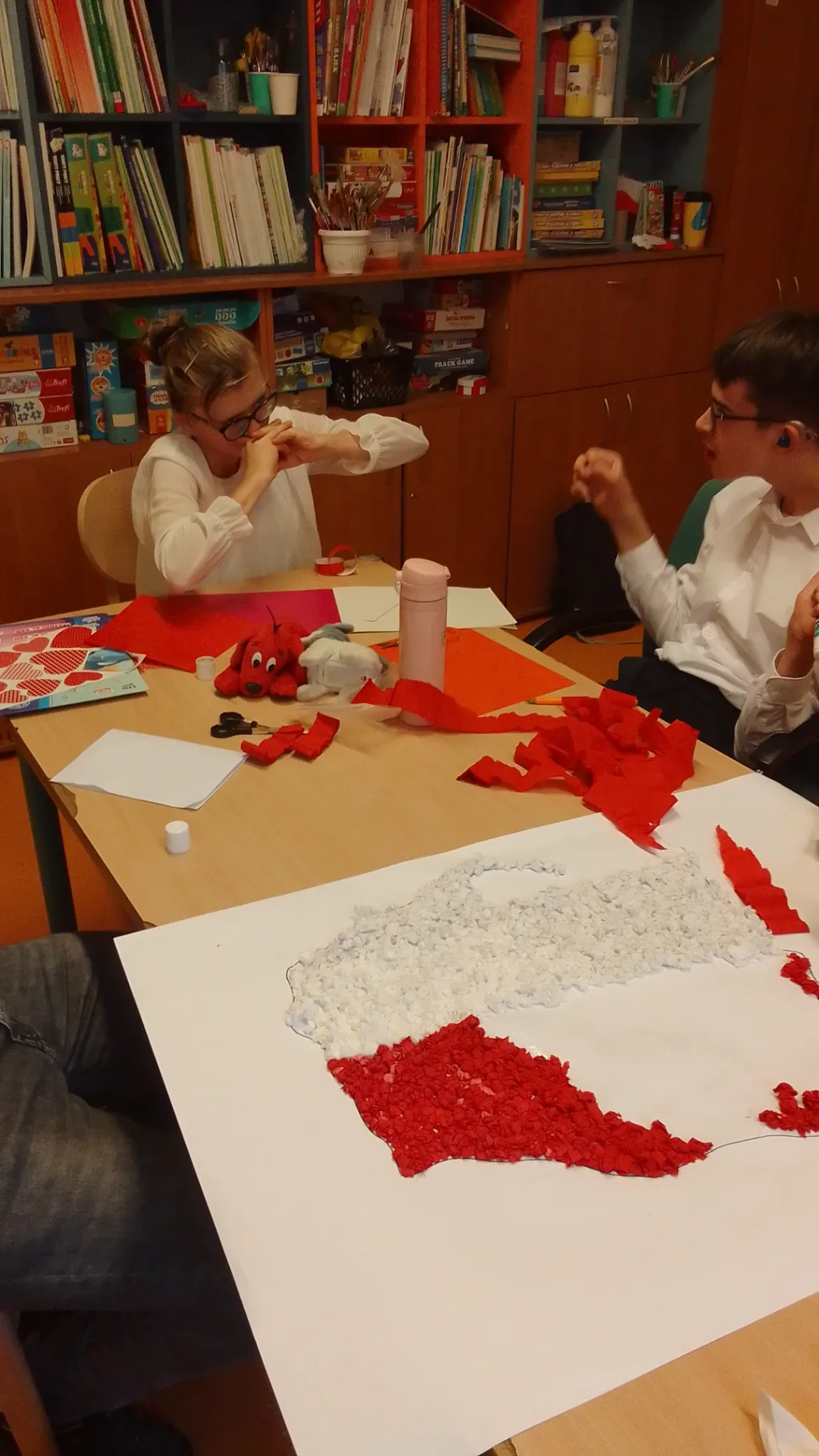 · Kornelia, Tima, Nela, Kuba i Marzenka umieli współpracować i wspólnie stworzyli biało-czerwoną mapę Polski z okazji Święta Niepodległości,
