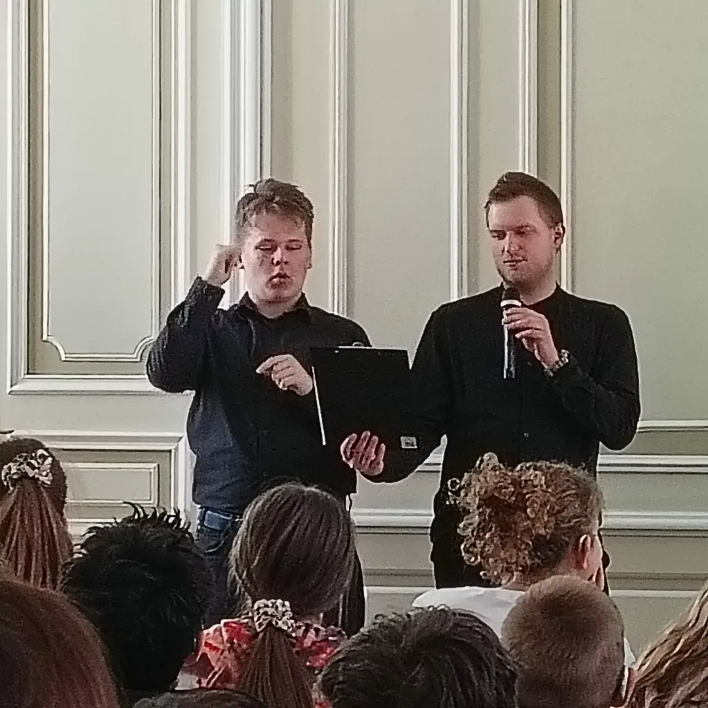 Pan Mieszko, wraz z przedstawicielami samorządu uczniowskiego, przypomniał starszym uczniom o tym tragicznym wydarzeniu.