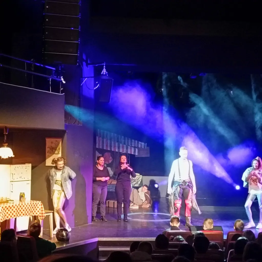 Tłumaczenie chyba się podobało – młodzież po spektaklu chętnie rozmawiała i robiła sobie zdjęcia z tłumaczkami. Pracownicy teatru, którzy trochę obawiali się stojących na scenie tłumaczy, powiedzieli ” migające panie, wniosły do przedstawienia dodatkową wartość”.