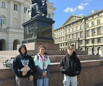 Ale powtórzyliśmy też inne zagadnienia. Mijając pomniki Adama Mickiewicza i Juliusza Słowackiego pani sprawdziła, co uczniowie pamiętają z ich twórczości. Napisy (np. na pomniku Kopernika) były okazją do przypomnienia części mowy, odmiany wyrazów, słowotwórstwa. To uczniom podobało się najmniej.