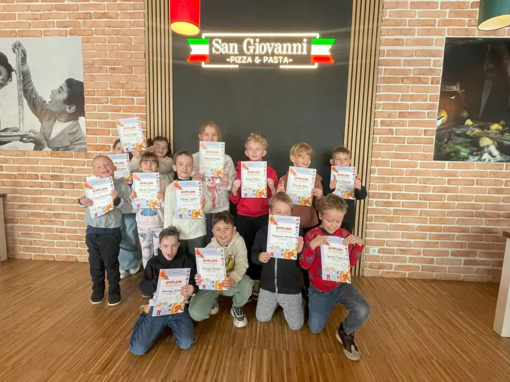 Gdy część dzieci tworzyła niepowtarzalne, autorskie pizze, pozostała część uczniów wybierała zmywalne tatuaże i rozwiązywała zagadki.