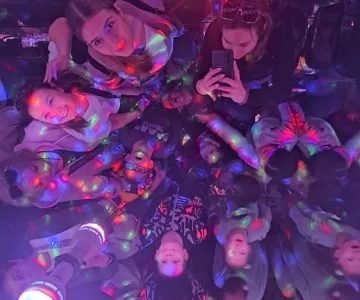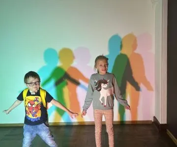 Najwięcej przyjemności a zarazem trudności sprawiło im przejście przez podwieszony, wyciemniony tunel z okalającymi go kolorowo migającymi ścianami świateł.