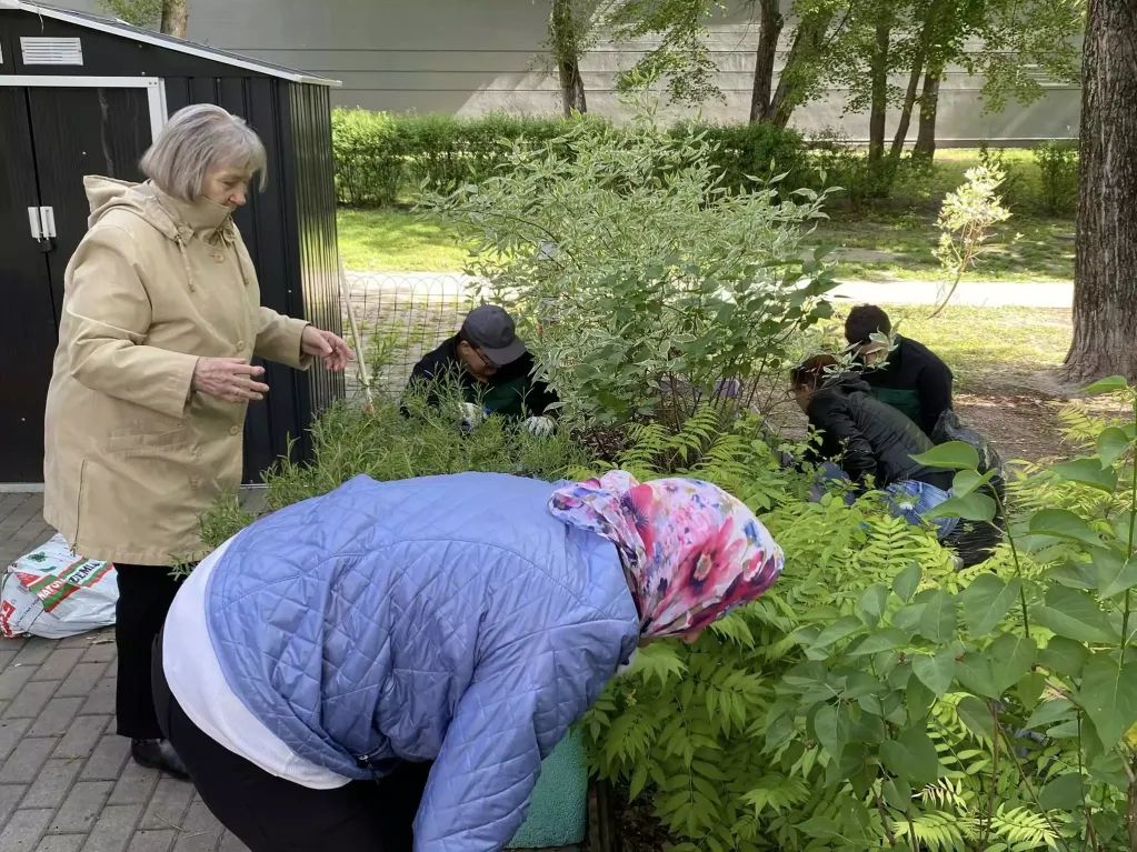 Prace porządkowe po sezonie zimowym były okazją do międzypokoleniowej integracji seniorów z młodzieżą.👵🤝👨🦱💚
