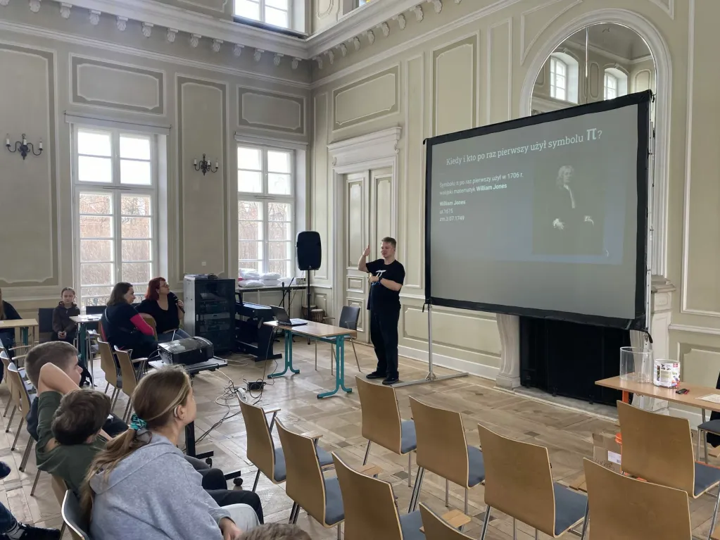 Przygotowano stoiska z różnorodnymi zadaniami matematycznymi, które nasi uczniowie chętnie rozwiązywali. Odbył się także konkurs „Kto zapamięta jak najdłuższe rozwiniecie dziesiętne liczby π„. Zwycięzcy otrzymali nagrody z rąk dyrektora Instytutu pana Bartosza Wilimborka oraz nauczycieli matematyki.