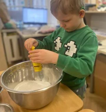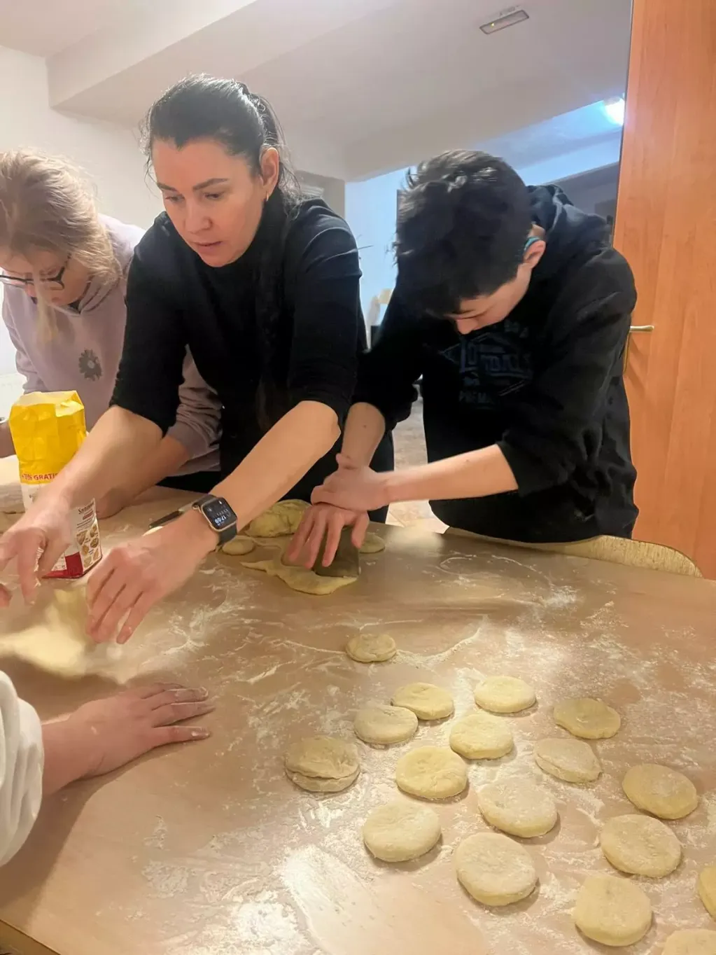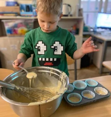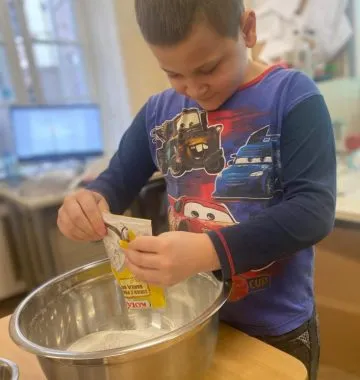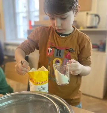 Mąkę sypały, jaja wbijały, przyprawy i czekoladę dodawały.