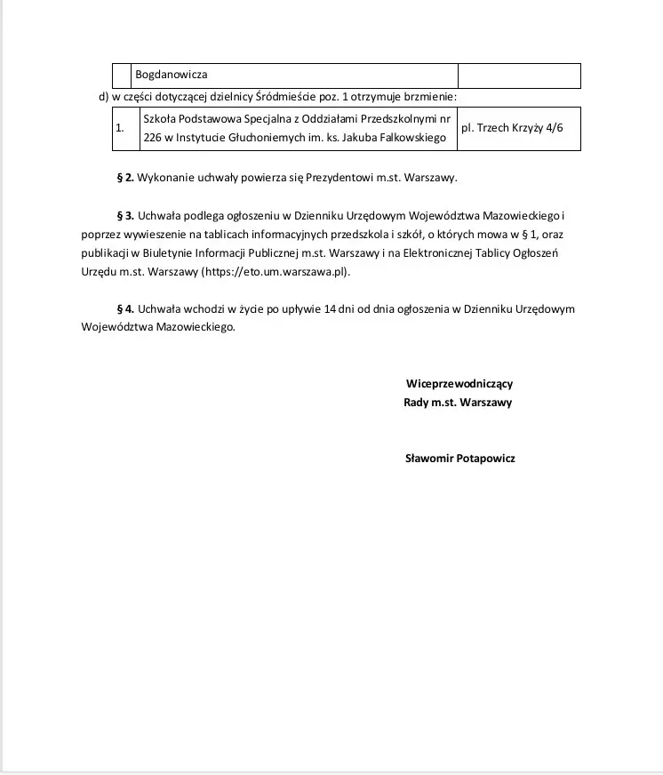 Poniżej przekazujemy link do BIP m.st. Warszawy, w którym została opublikowana uchwała.