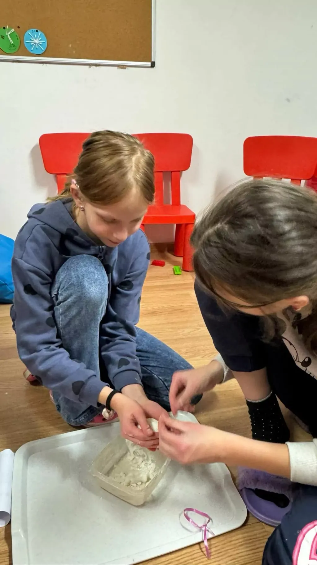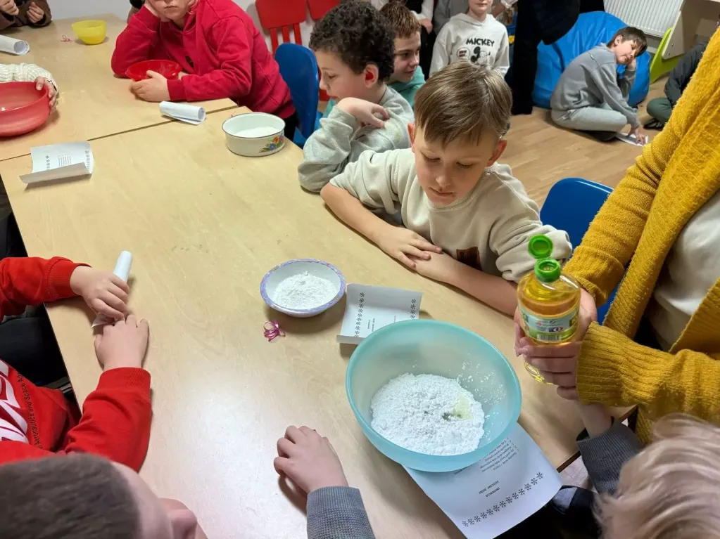 ❄❄Na koniec zajęć stworzyliśmy sztuczny śnieg, dzięki któremu powstały piękne bałwanki ☃️☃️