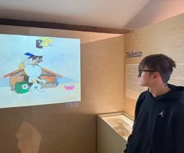Pierwszym przystankiem było zwiedzanie Muzeum Kinematografii. Dowiedzieliśmy się wiele interesujących rzeczy na temat początków filmu i kina, mogliśmy zobaczyć elementy scenografii z filmów „Ziemia obiecana” oraz „Vabank”. Obejrzeliśmy wystawę „Pałac pełen bajek”, gdzie poznaliśmy, jak wyglądały pierwsze kroki w polskiej animacji, a każdy z nas, niezależnie od wieku mógł odnaleźć swoich bohaterów z dzieciństwa.