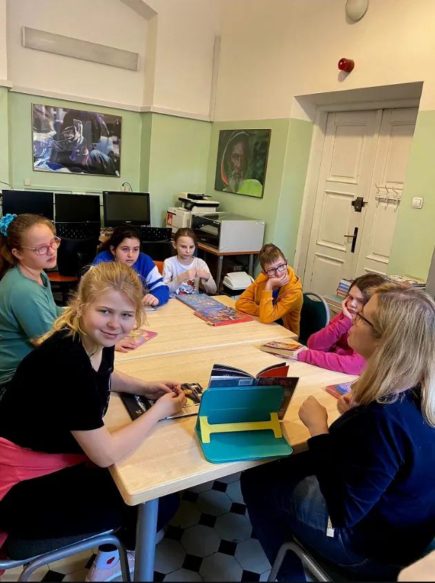 Od kilku tygodni w każdy czwartek spotykamy się z Panią Moniką w naszej szkolnej bibliotece. Zawsze jest miło i ciekawie.