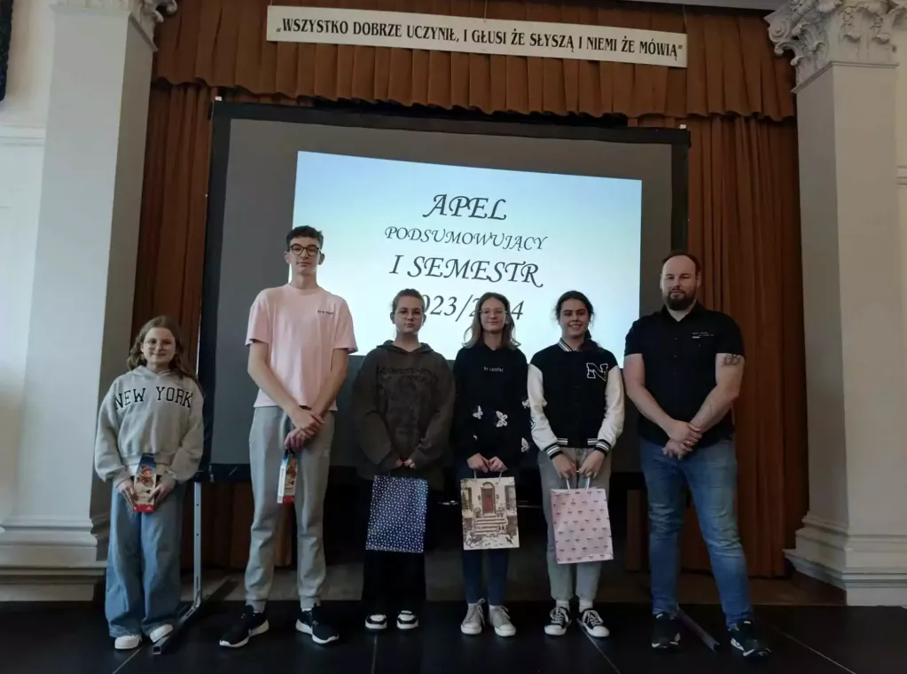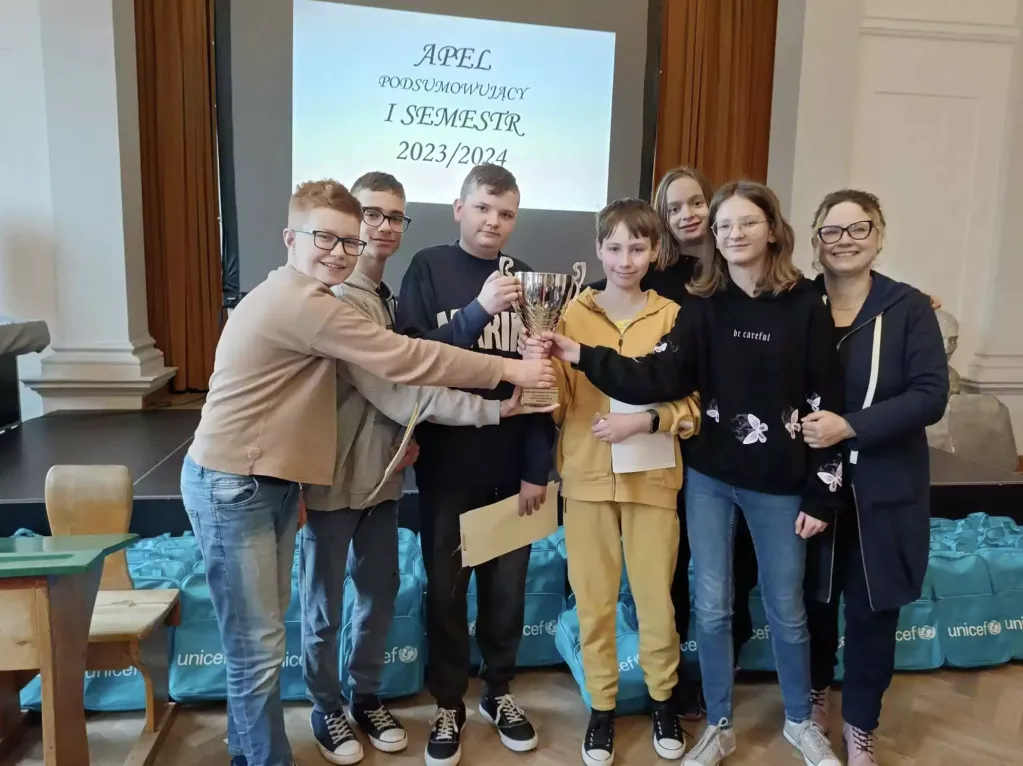 Na koniec moment, na który wszyscy czekali – przekazanie pucharu Instytutu dla najlepszej klasy w minionym semestrze. Zwycięska klasa 5b oprócz dyplomu i przechodniego pucharu otrzymała też czek na kwotę kilkuset złotych. Ciekawe, jaką atrakcję sobie zorganizują?