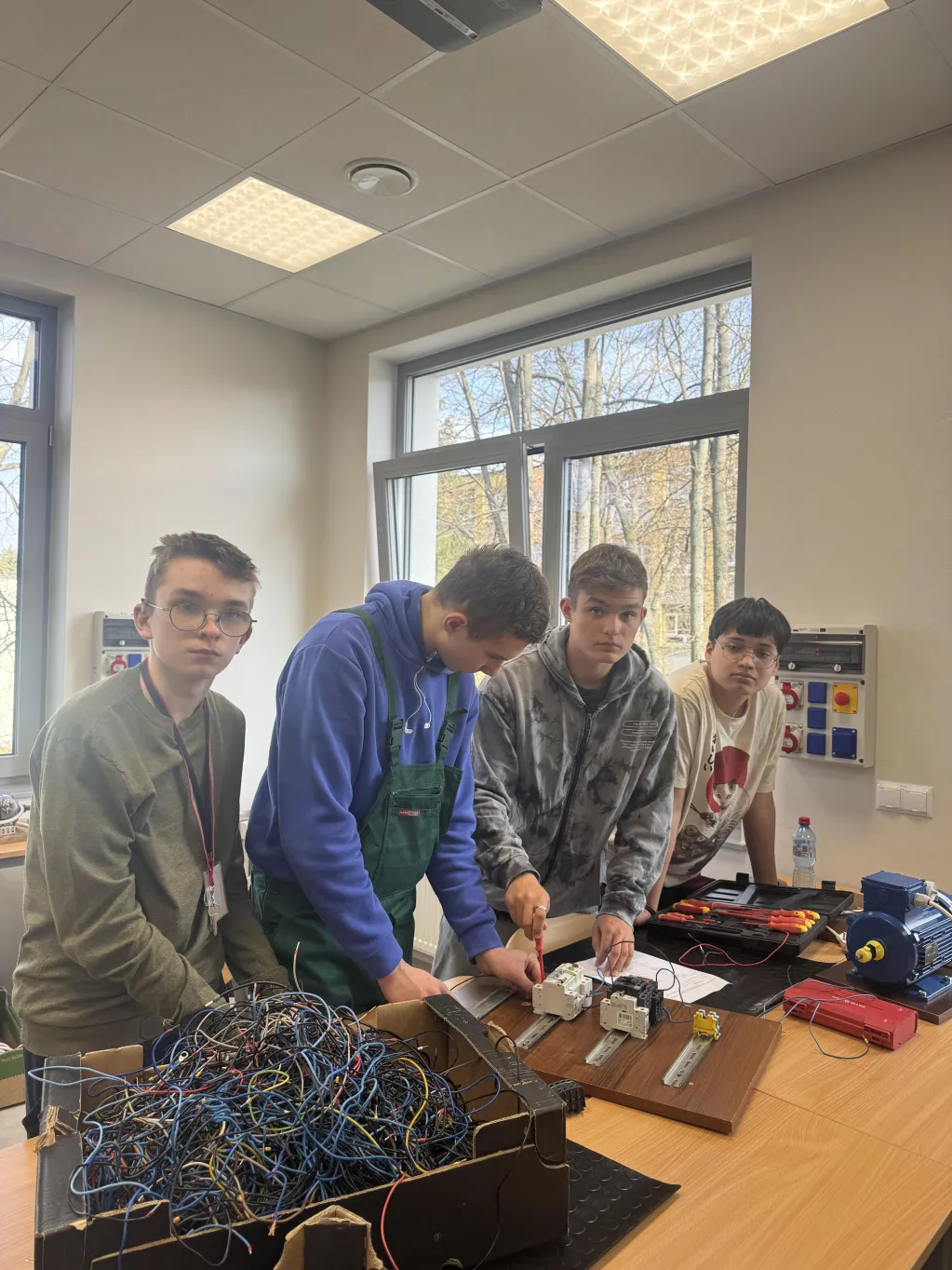 Dziś uczniowie z klasy pierwszej i trzeciej technikum kształcącym w zawodzie elektryk mieli okazję uczestniczyć w zajęciach praktycznych w Branżowym Centrum Umiejętności nr 1 w Siedlcach w dziedzinie elektryka ⚡️