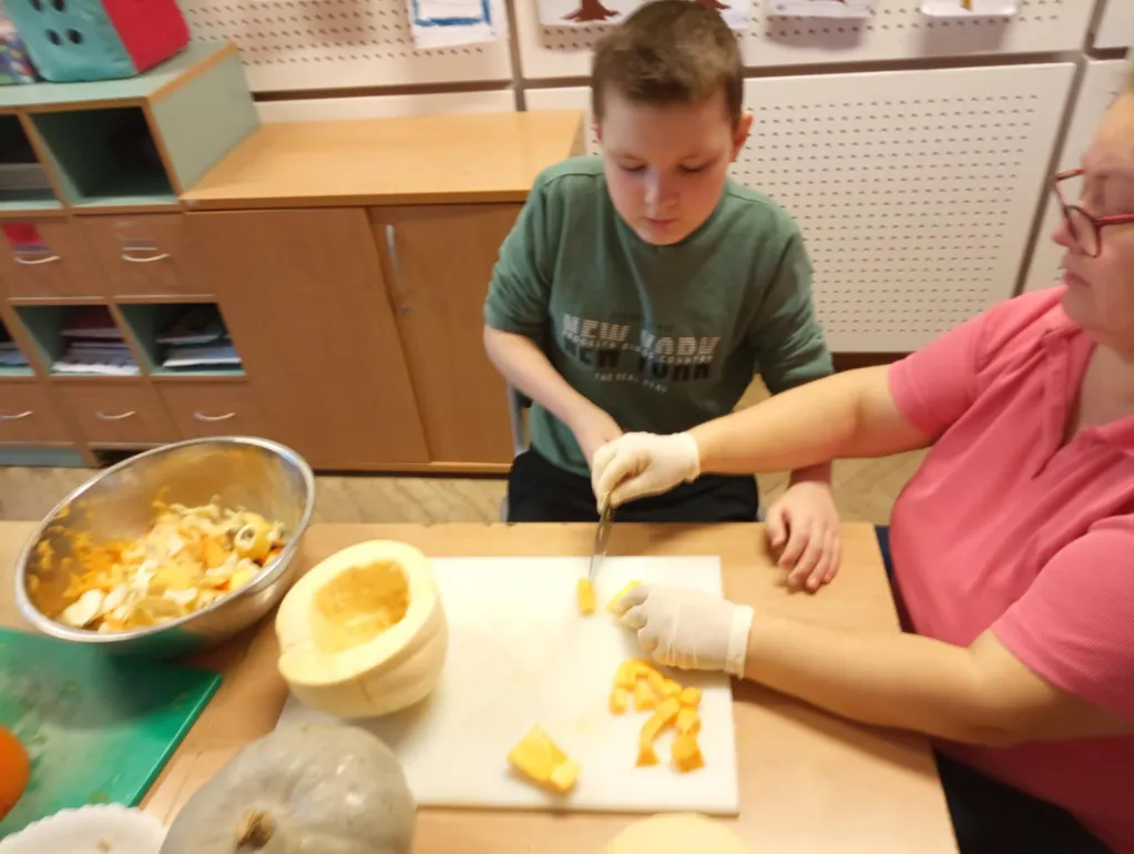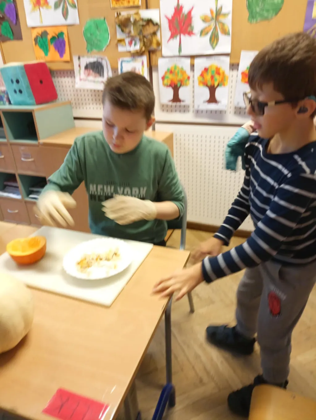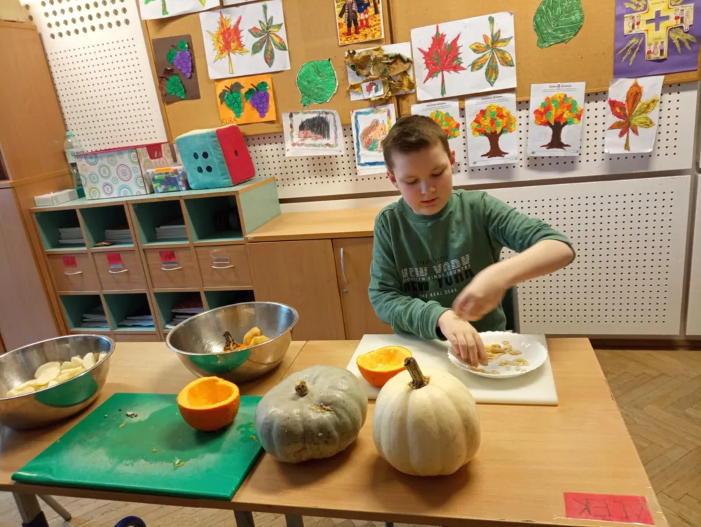 Na koniec czekał nas sprawdzian z naszej wiedzy o dyniach oraz warsztaty z malowania dyni wg własnego pomysłu. Każda z pomarańczowych główek wyszła wspaniale.