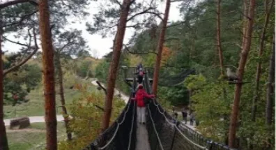 Uczniowie spacerowali … wysoko nad ziemią. Pojechali do miejsca, gdzie można być bliżej natury I spojrzeć na świat z innej perspektywy – z wysokości koron drzew, gdzie swoje siedziby mają ptaki drapieżne. W Pomiechówku – bo tam właśnie byli – jest niezwykła ścieżka przyrodnicza. Można spacerować mostami zawieszonymi w koronach drzew, wyjść na edukacyjną wieżę widokową I poznać specyficzą dla terenu przyrzecznego faunę I florę. A także świetnie się bawić, np. na huśtawce pozwalającej porządnie odczuć, co to jest siła odśrodkowa …