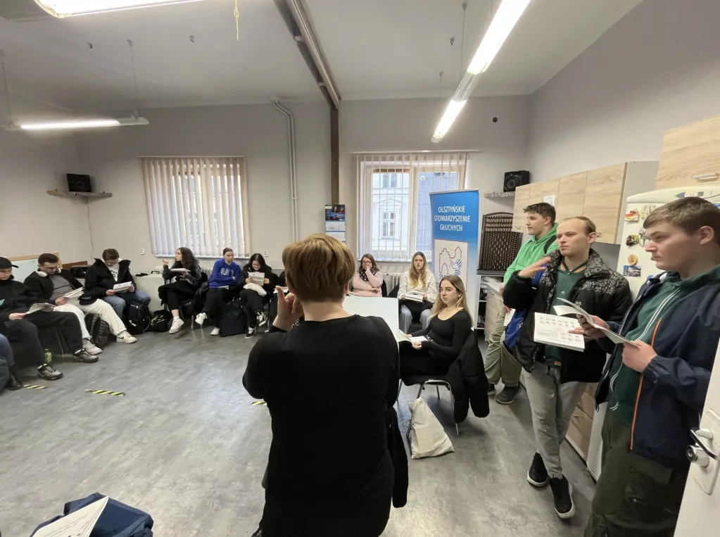Na początku kwietnia 2024r. uczniowie wyjechali do Olsztyna. Odwiedzili tam Uniwersytet Warmińsko-Mazurski. Zostali oprowadzeni po uczelni i dowiedzieli się, jak wygląda życie studenckie. UWM oferuje aż 75 kierunków w jednym miejscu i zapewnia pełną dostępność osobom głuchym czy słabosłyszącym. Spotkane absolwentki Instytutu Głuchoniemych (jedna z nich jest już na 4 roku) opowiedziały o swoich doświadczeniach.