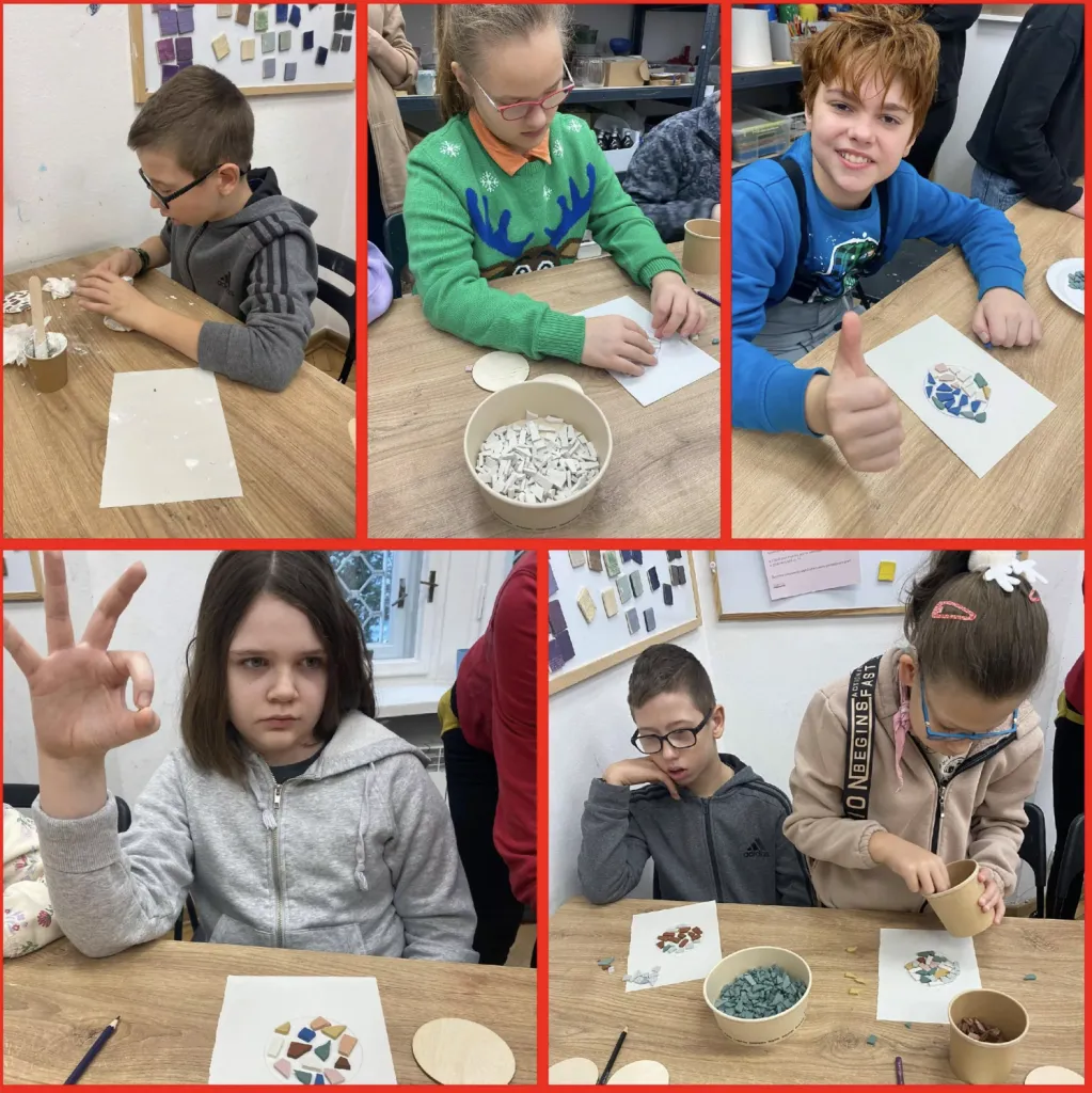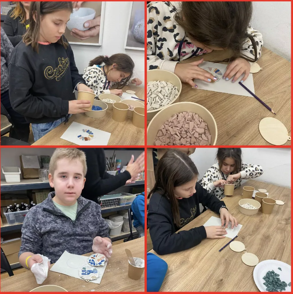 W przemiłej atmosferze, pod fachowym okiem mistrzyni ceramiki, dzieci z klas 3c 3e i 3d stworzyły własne mozaikowe ozdoby choinkowe.