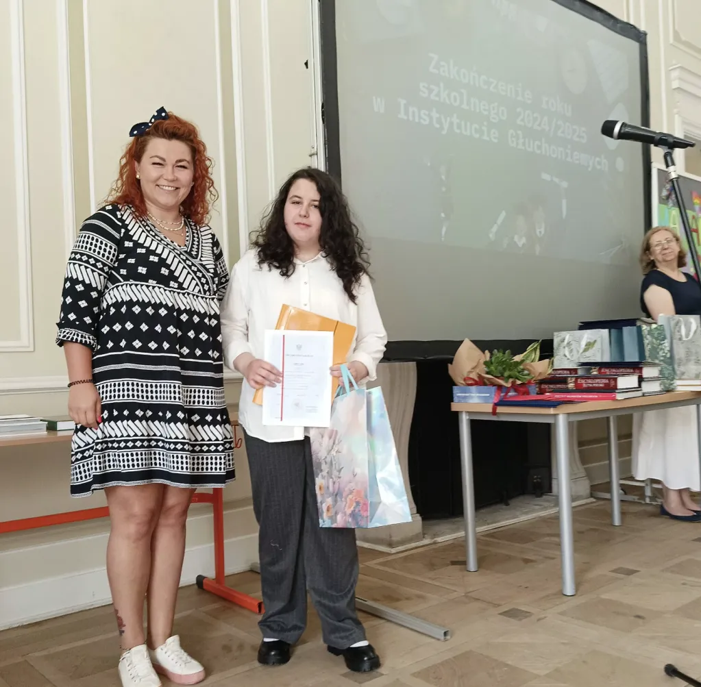 Następnie pani dyrektor ogłosiła, która klasa zdobyła Puchar Instytutu za drugi semestr roku szkolnego 2024/2025. Fanfary zabrzmiały … i puchar przeszedł