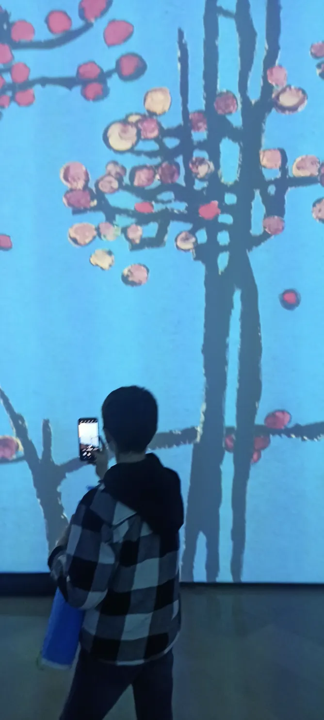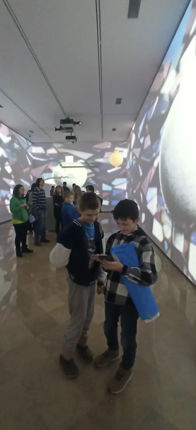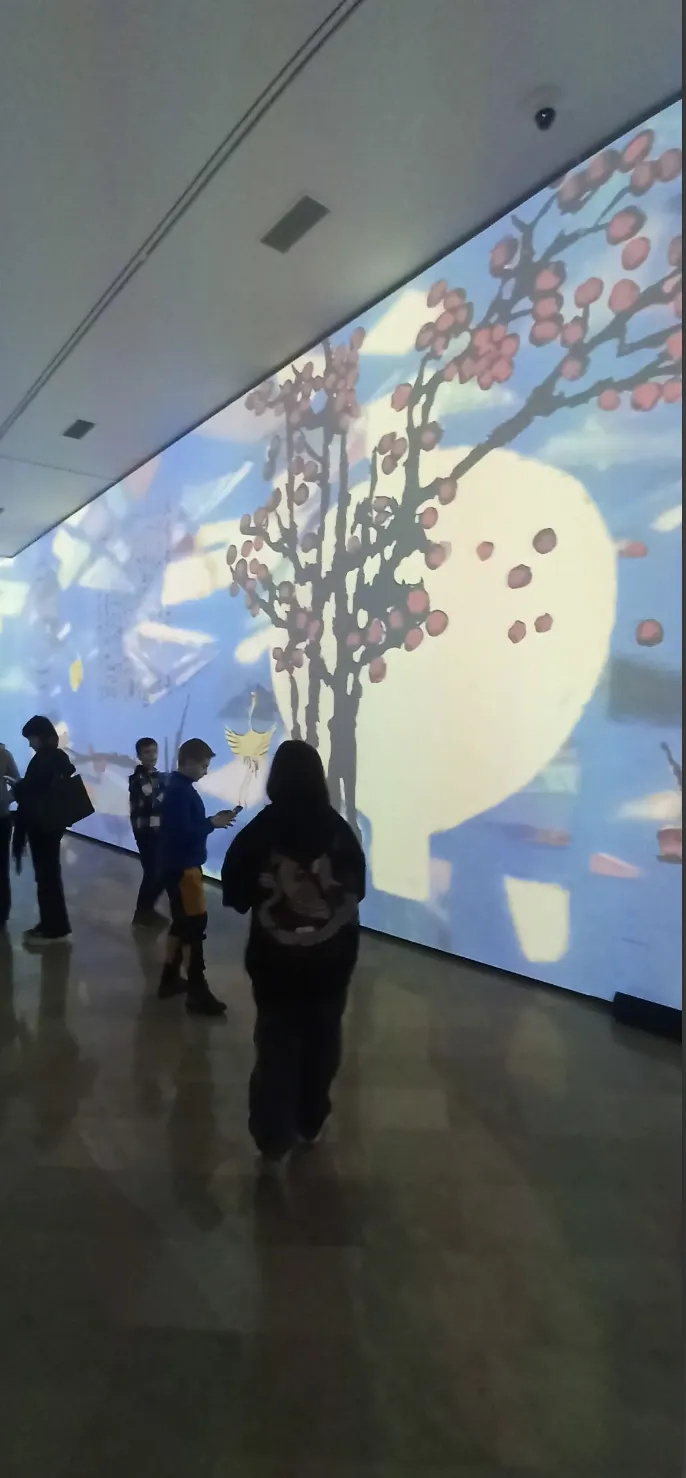 Wizytę w CSW zakończyliśmy obejrzeniem, a raczej zanurzeniem się w wystawę immersyjną Kim Whanki “Duet – Pieśń z Wszechświata” – koreańskiego pioniera sztuki abstrakcyjnej. Doświadczyliśmy uniwersalnego piękna, które przekracza granice kulturowe. Była to przestrzenna instalacja, w której nie było ścian ani sufitu, tylko niebieskie i białe plamy światła, które tworzyły harmonijny i spokojny wszechświat. Czuliśmy się, jakbyśmy byli częścią tego wszechświata i mogli się w nim poruszać bez ograniczeń.