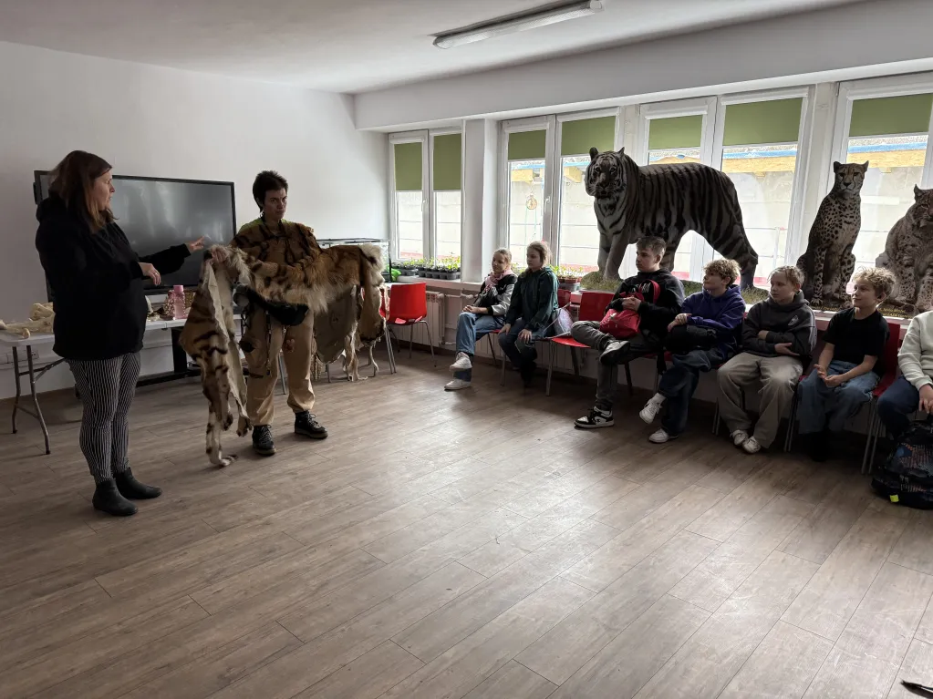 Uczniowie wzięli najpierw udział w warsztacie "Pokaż kotku, co masz w środku". Byli bardzo zaciekawieni i zadowoleni z udziału w zajęciach.