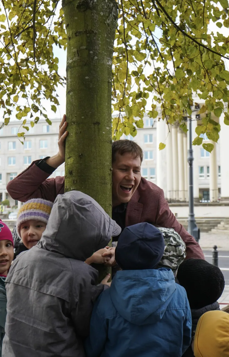 Jesteśmy podekscytowani i wiemy teraz opieka nad drzewem to nasze zadanie. Gdy będziecie szli chodnikiem, to powiedzcie i zamigajcie miłe słowo naszemu drzewu, możecie je też przytulić, aby rosło duże, piękne i zielone . Jak widać na zdjęciu pan dyrektor Kuba już to zrobił 😊